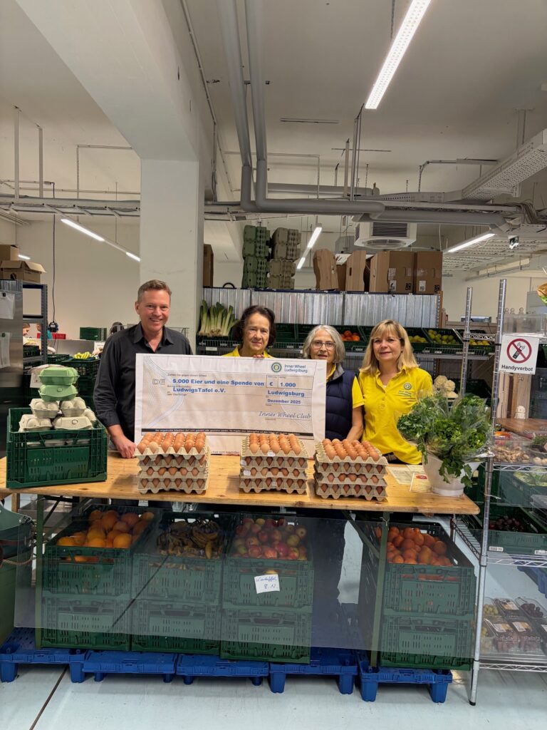 Der Geschäftsführer der Wohnungsbau LB, Andreas Veit, bescherte den Kunden der Ludwigsburger Tafel Lebensmittel im Wert von 5.000 Euro. Die Neuapostolische Kirche sammelte Waren im Wert von 2.200 Euro. Die Damen von Inner Wheel LB spendeten regionale Eier im Wert von 2.000 Euro sowie on top eine Geldspende in Höhe von 1.000 Euro. Und das alles machen sie Jahr für Jahr