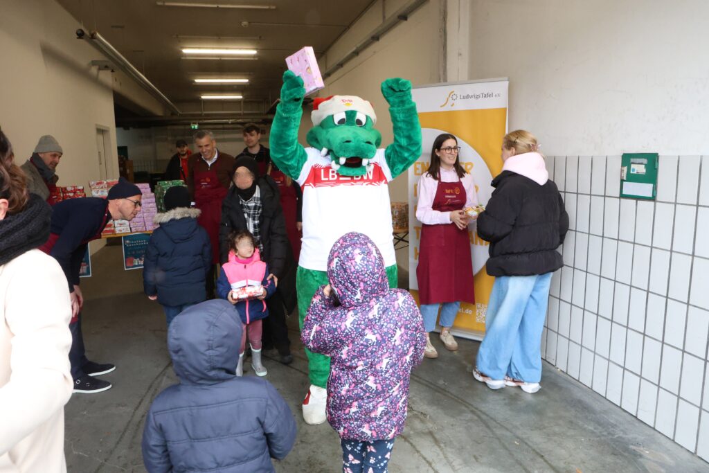 Über 100 Kinder nahmen am 5.12. freudestrahlend ein Geschenk entgegen und ließen sich mit dem VfB Stuttgart Maskottchen fotografieren. Die übrigen Geschenke werden bis Weihnachten an die Kinder unserer Tafelkunden verteilt, die nicht dabei sein konnten.